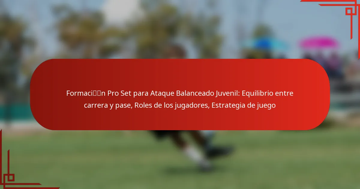 La formación Pro Set es una estrategia ofensiva efectiva en el fútbol juvenil que promueve un enfoque equilibrado entre las jugadas de carrera y pase. Al incorporar dos corredores y dos receptores abiertos, esta formación permite a los equipos adaptar su estrategia de juego para explotar las debilidades defensivas, asegurando que el papel de cada jugador sea vital para mantener la efectividad ofensiva.